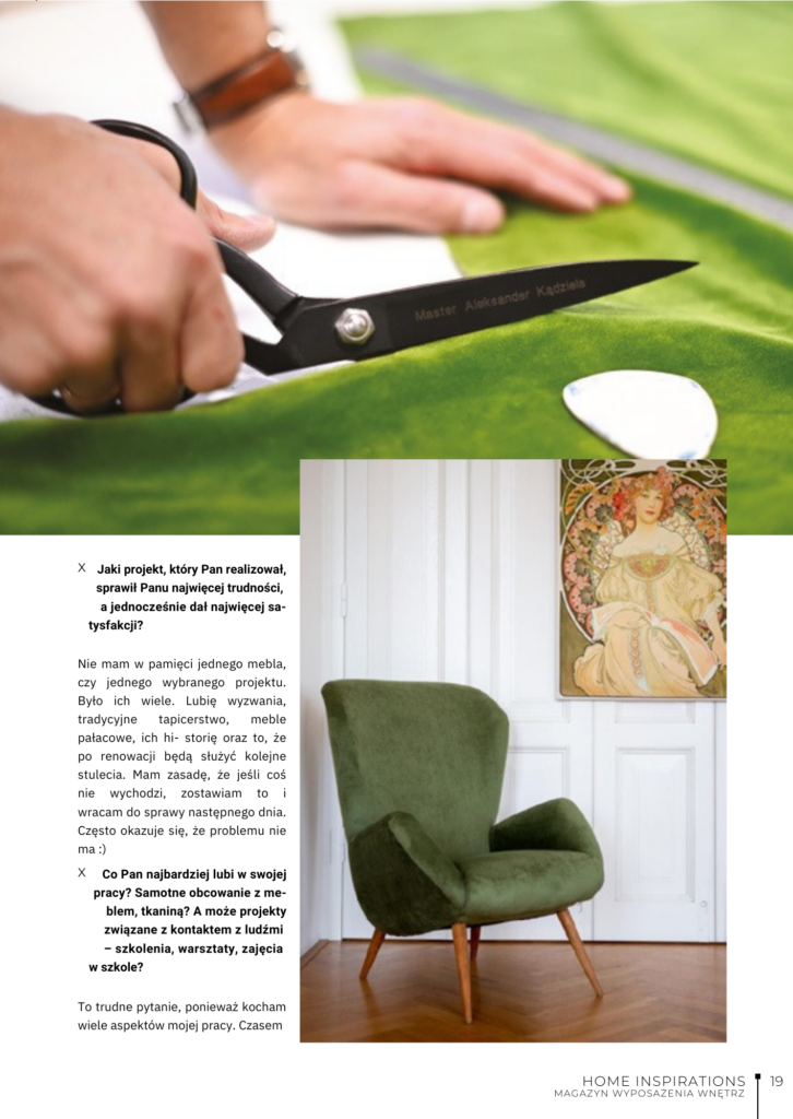 Wywiad dotyczący pracy tapicera, edukacji, DIY oraz miejsca meblarstwa i renowacji mebli we współczesnej kulturze.