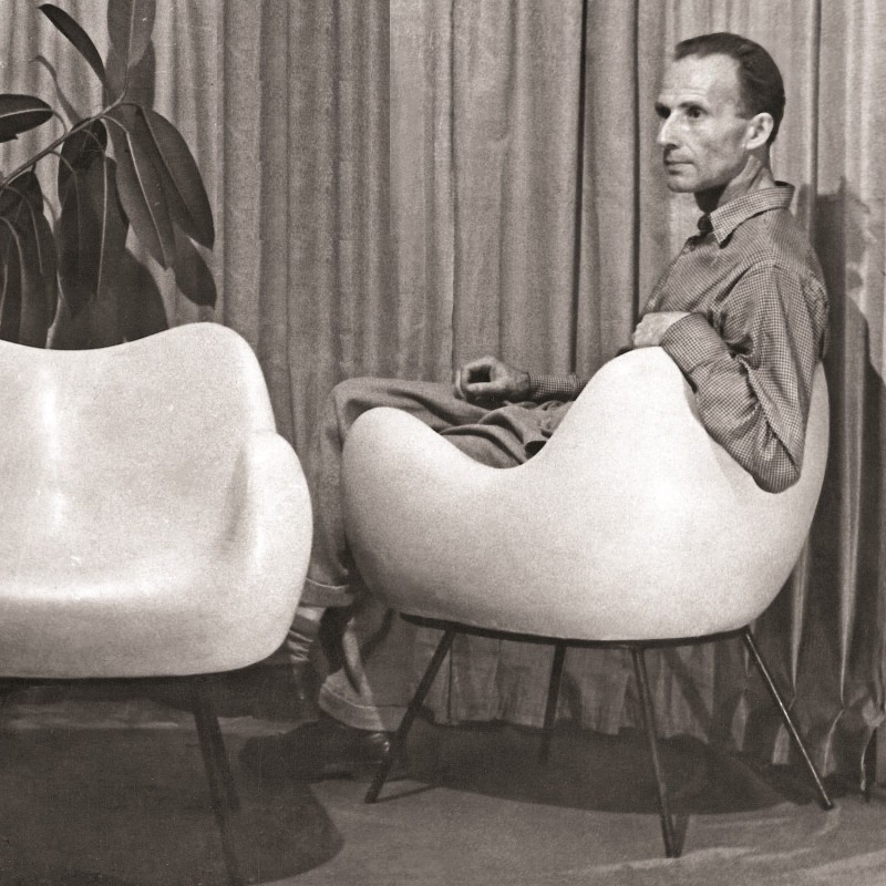 RM58 Romana Modzelewskiego z 1958 roku należy do najważniejszych projektów w historii polskiego wzornictwa. Organiczna, skorupowa forma i zastosowanie laminatu poliestrowo-szklanego sprawiły, że model wyprzedzał możliwości ówczesnego przemysłu.