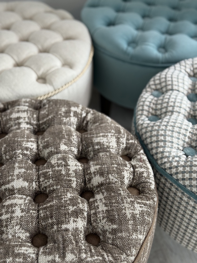 Wezgłowie, poduszki, dekoracje, wałki, PUF z pikowaniem chesterfield.