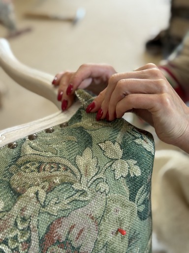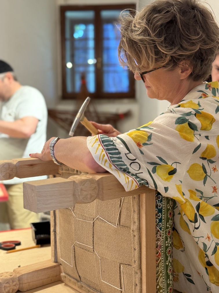 Szkolenie obejmuje precyzyjne układanie bawełny organicznej oraz poznanie nietypowych wyściółek, takich jak wielbłądzia wełna. Praca z luksusowymi tkaninami oraz ręczny montaż ozdobnych elementów: lamówek i dekoracyjnych gwoździ, z dbałością o zachowanie oryginalnego stylu mebla. Praktyka ręcznego dopasowywania tkanin z wykorzystaniem technik marszczenia, plisowania i napinania, by perfekcyjnie dopasować wzory i faktury. Prezentacja autorskich technik i rozwiązań mistrza, które gwarantują trwałość i wyjątkową jakość projektów.